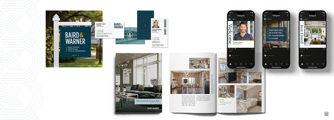 We visited the archives to revive a classic brand element and give it a modern update, taking our 1855 founding date to design a unique, modern icon. Using the Baird & Warner initials, we created two more patterns that harken to prestigious heritage brands.