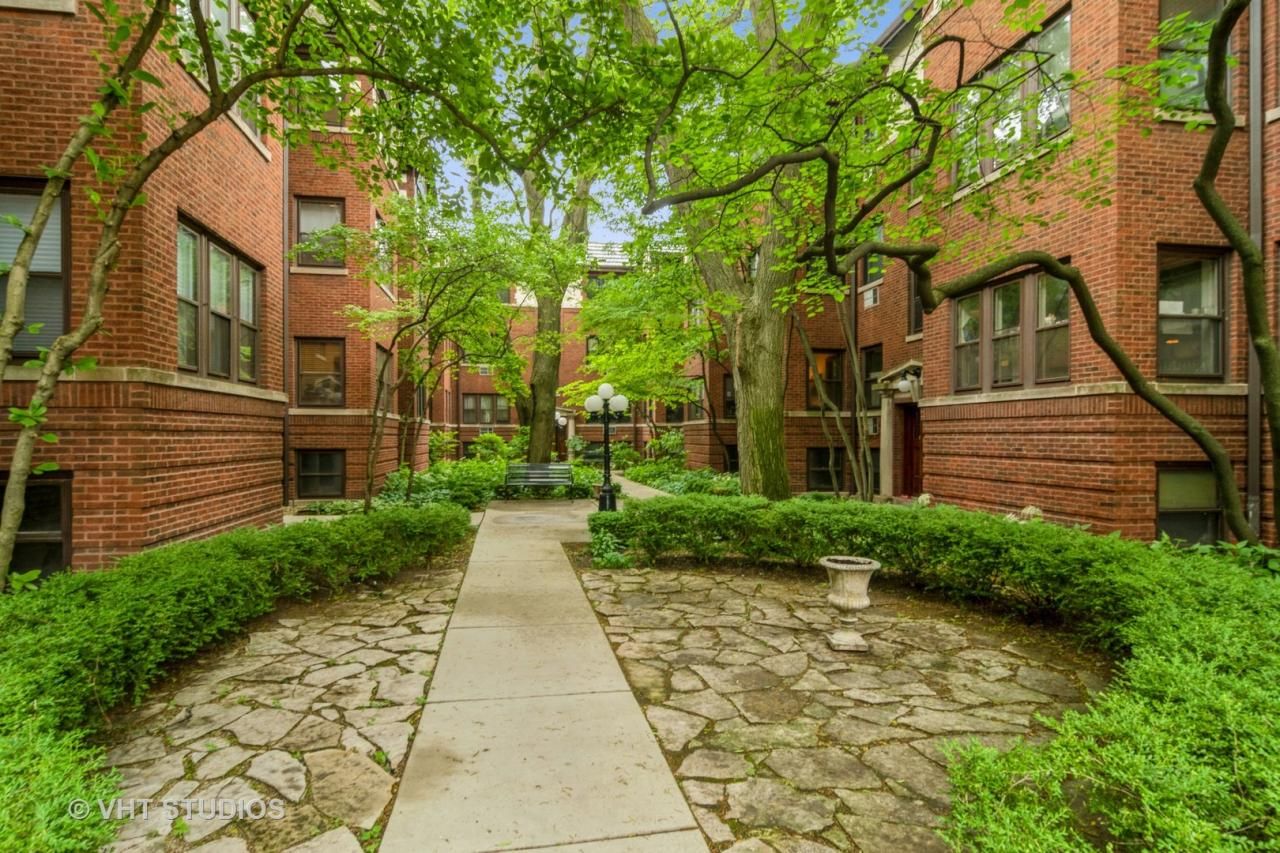 Welcome Home! Lovely vintage condo in the heart of downtown Oak Park. This gorgeous courtyard building is located directly across from Scoville park where you will find free concerts all summer, tennis, beauty and relaxation! Unit is situated towards the back of the serene courtyard so if you crave peace and quiet, it is all yours. Building is in the center of town where you have easy access to the library, Lake movie theatre, restaurants, shopping, the green line el station, the metra and all that downtown Oak Park has to offer. Unit boasts newly refinished hardwood floors, wood burning fireplace in living room, two bedrooms, newly renovated full bath, updated kitchen with Oak cabinets, granite countertops, and pantry closet. Kitchen leads to darling back porch perfect for table and chairs. Freshly painted throughout. Laundry in the building. FYI, unit was temped off the market for the last 10 mos or so while seller refinished floors and renovated bathroom.